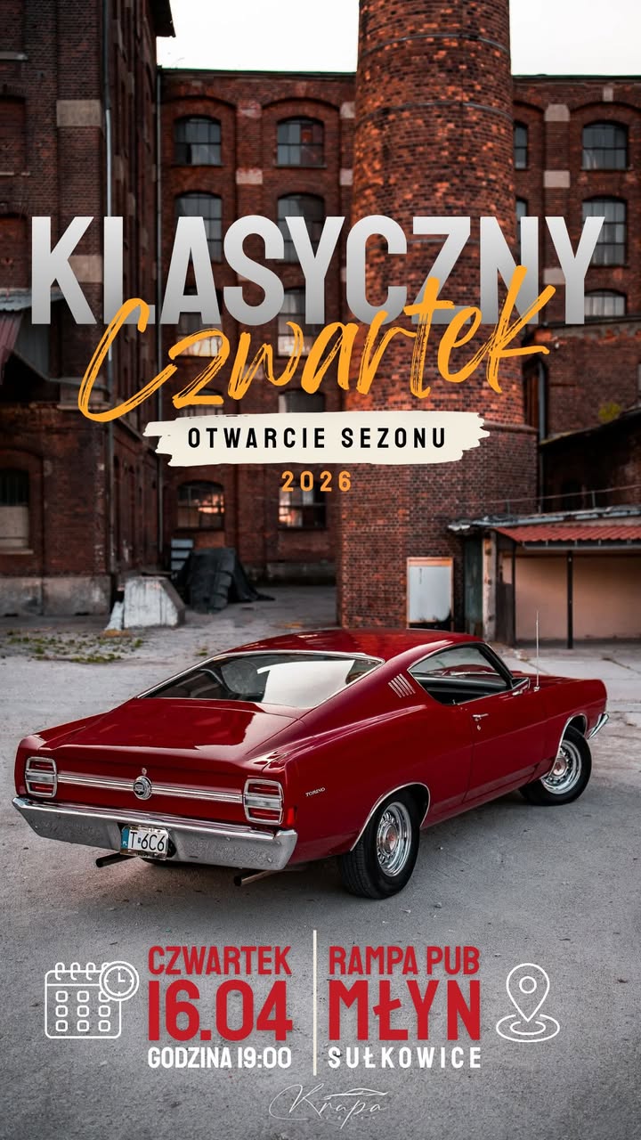 Od kwietnia do października spotykamy się w każdy czwartek o 19:00 na Młynie Sułkowice, w Rampa Pub. To nasz stały punkt sezonu i miejsce, w którym klasyczna motoryzacja spotyka się z ludźmi,